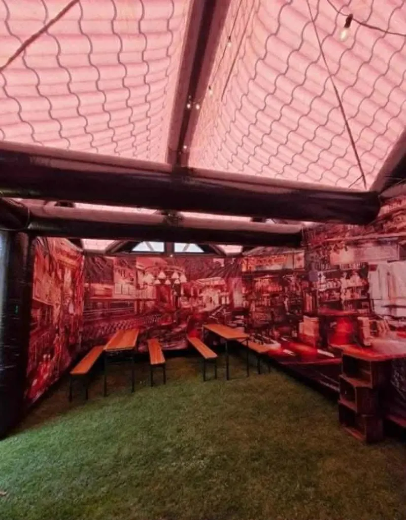 Designed to replicate the cosy charm of a real pub, our inflatable pub creates an immersive environment that instantly elevates your event. With its realistic exterior and spacious interior, it provides the perfect setting for guests to relax, socialise, and enjoy a memorable experience - without ever needing to leave your home or venue.